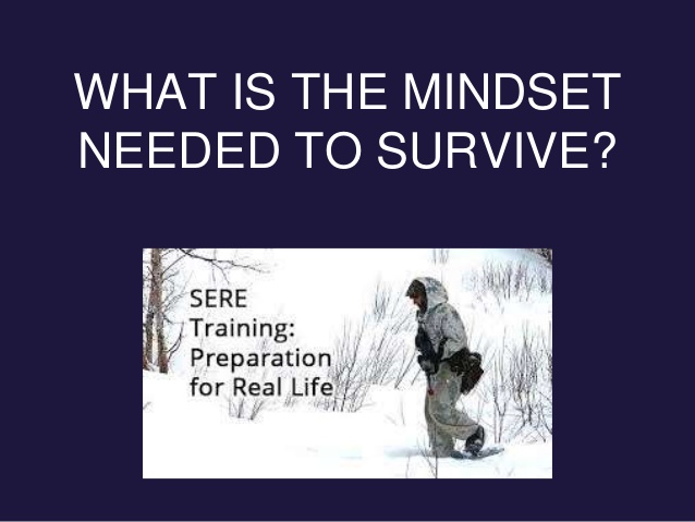No matter how hard it gets, Never quit! A survivor must have: Above all a determination to survive. All else is secondary. Fear serves a purpose, but too much fear can paralyze.